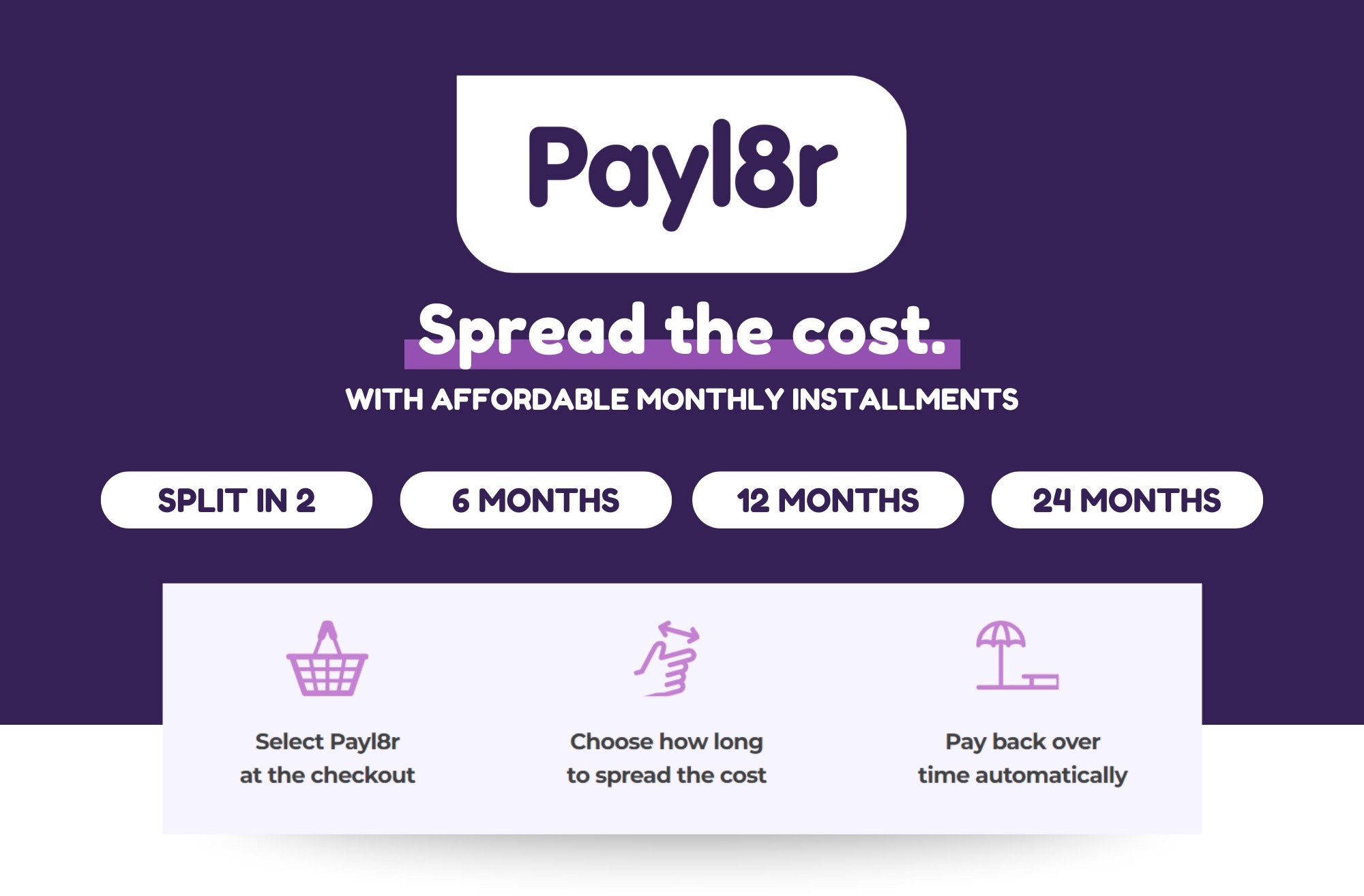 We know that flexibility matters when it comes to purchasing. That’s why we’ve partnered with Payl8r, giving you the option to spread the cost of your purchase in a way that suits your budget. Whether it’s interest-free or long-term monthly payments, you choose what works for you.