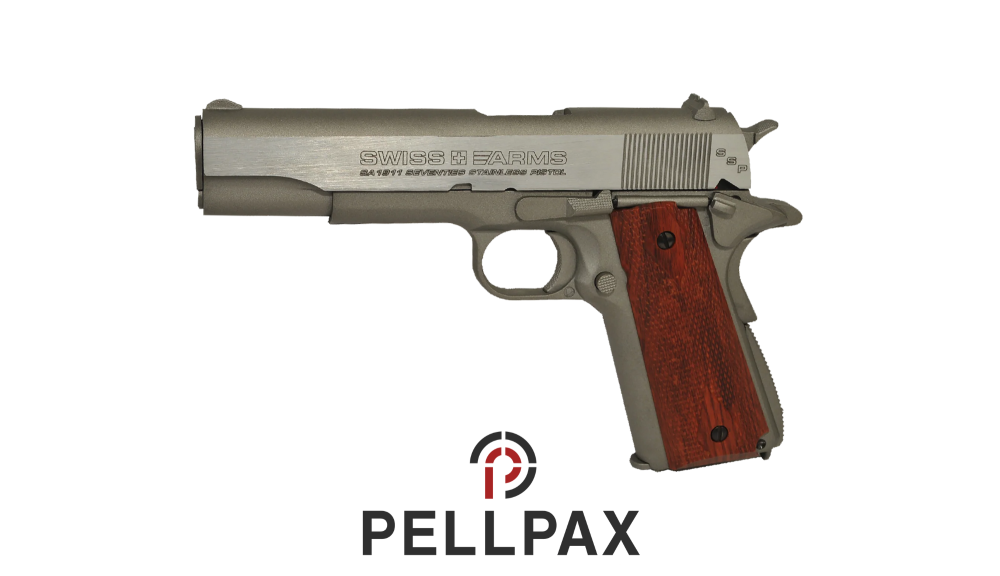 The Swiss Arms P1911 air pistol is a replica pistol made from full metal and features a realistic weight and feel.