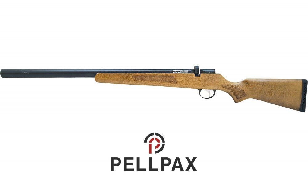 This Snowpeak M30 is a PCP rifle, ideal for either target shooting or pest control. The rifle shoots .22 pellets, and the wooden stock is very well balanced. A unique feature of the M30 is that the barrel is inside the air cylinder.