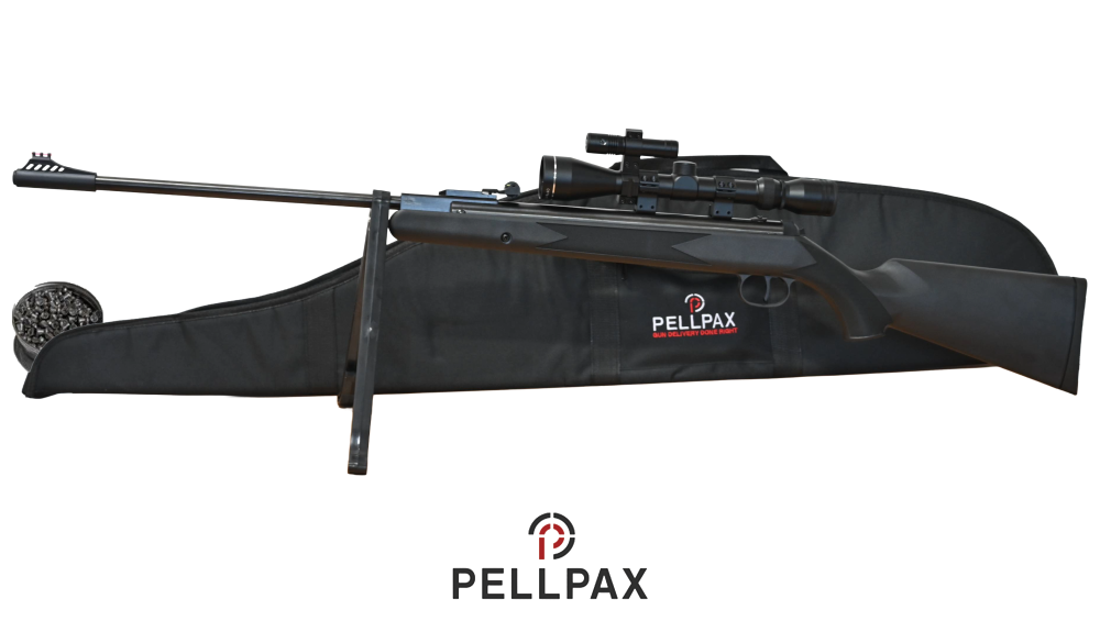 The Pellpax Reaper Night Hunter Kit is the perfect all-in-one package for shooters looking for power, precision, and value. This full-powered spring rifle delivers impressive performance straight out of the box and comes complete with everything you need to start shooting — including a scope, laser sight, bipod, and a tin of pellets.