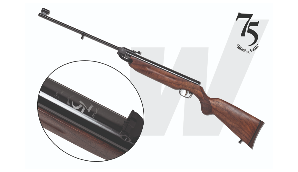 This commemorative model honours the styling of the original 1950s rifle while incorporating exclusive anniversary features. It is fitted with a beautifully finished oiled walnut stock, complete with a rounded, checkered pistol grip and a classic finger groove in the fore-end, reflecting the traditional design of early HW35 rifles. To mark the milestone, the receiver features special 75-year jubilee laser engraving, while the rifle is equipped with a distinctive gold-plated trigger reminiscent of the early models.