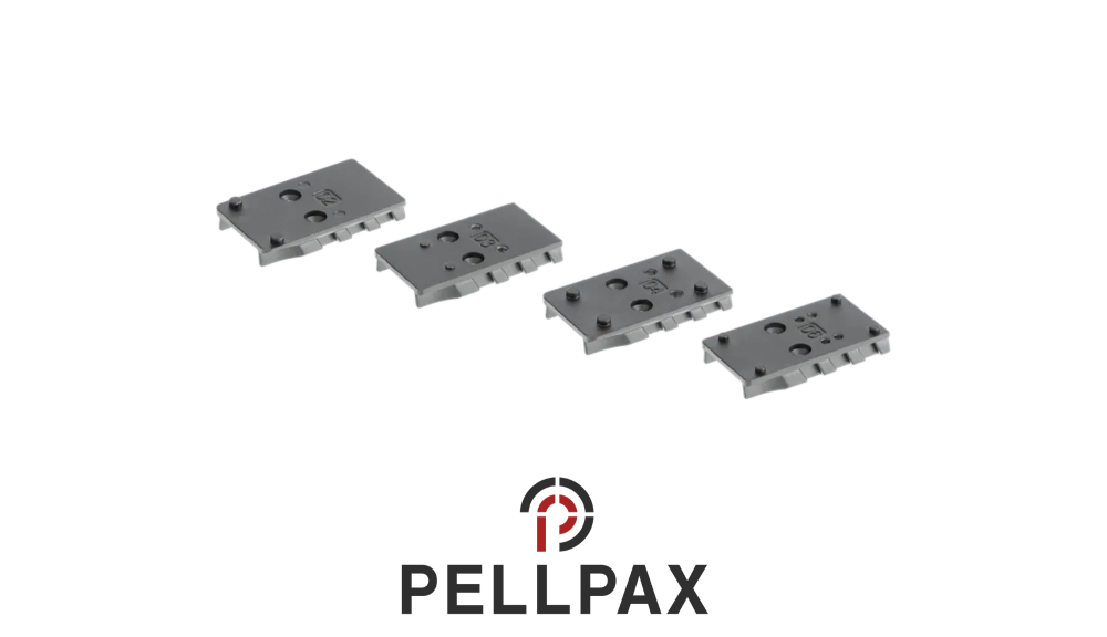 The set, consisting of four adapter plates prepares Walther PDP airgun models (5.8432/5.8473/5.8433) to accept red dot sights. Securely screwed to the slide, the adapters accept Vortex, C-More, Leupold and Trijicon footprints.