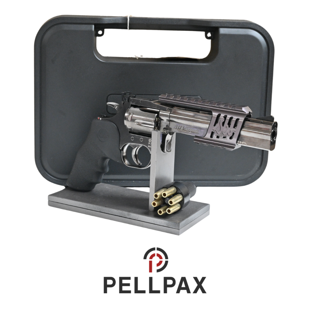 This preowned ASG Dan Wesson 357 Magnum is a .177 Pellet calibre air pistol within an Hardcase. This pistol is in great condition with minor usage marks.