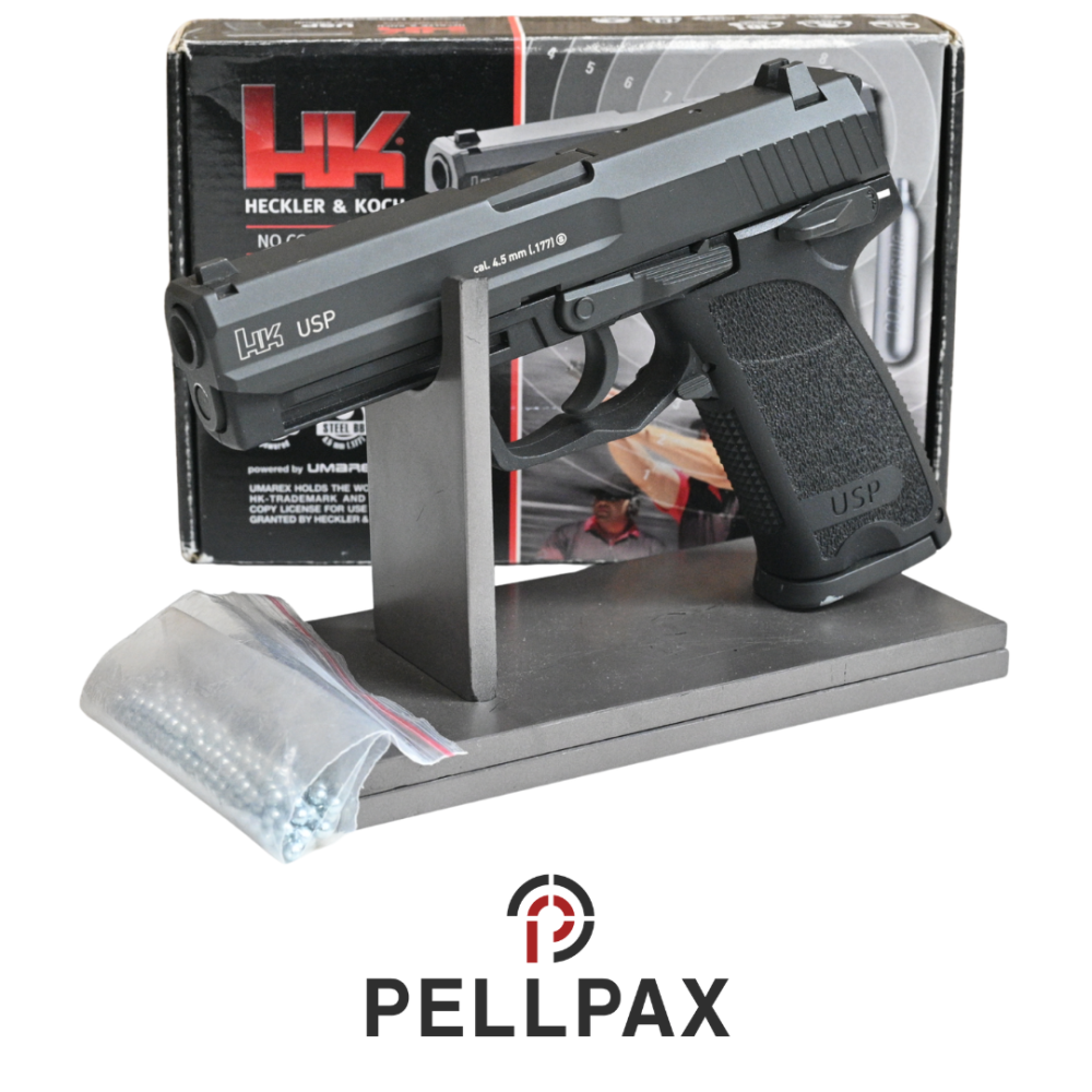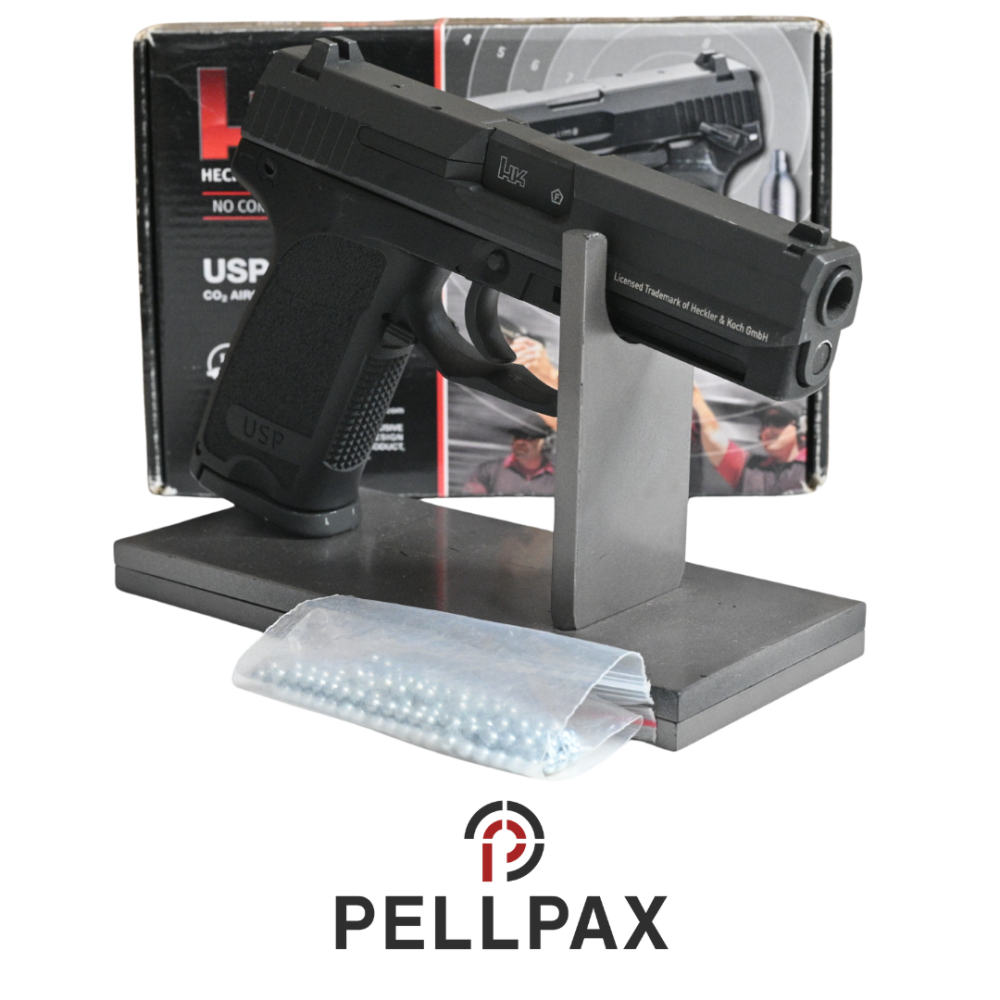 This preowned Heckler & Koch USP Blowback is a 4.5mm Steel BB calibre air pistol within an Original Box. This pistol is in great condition with minor usage marks.