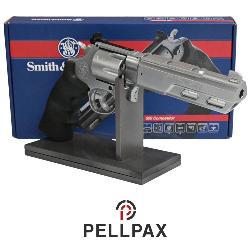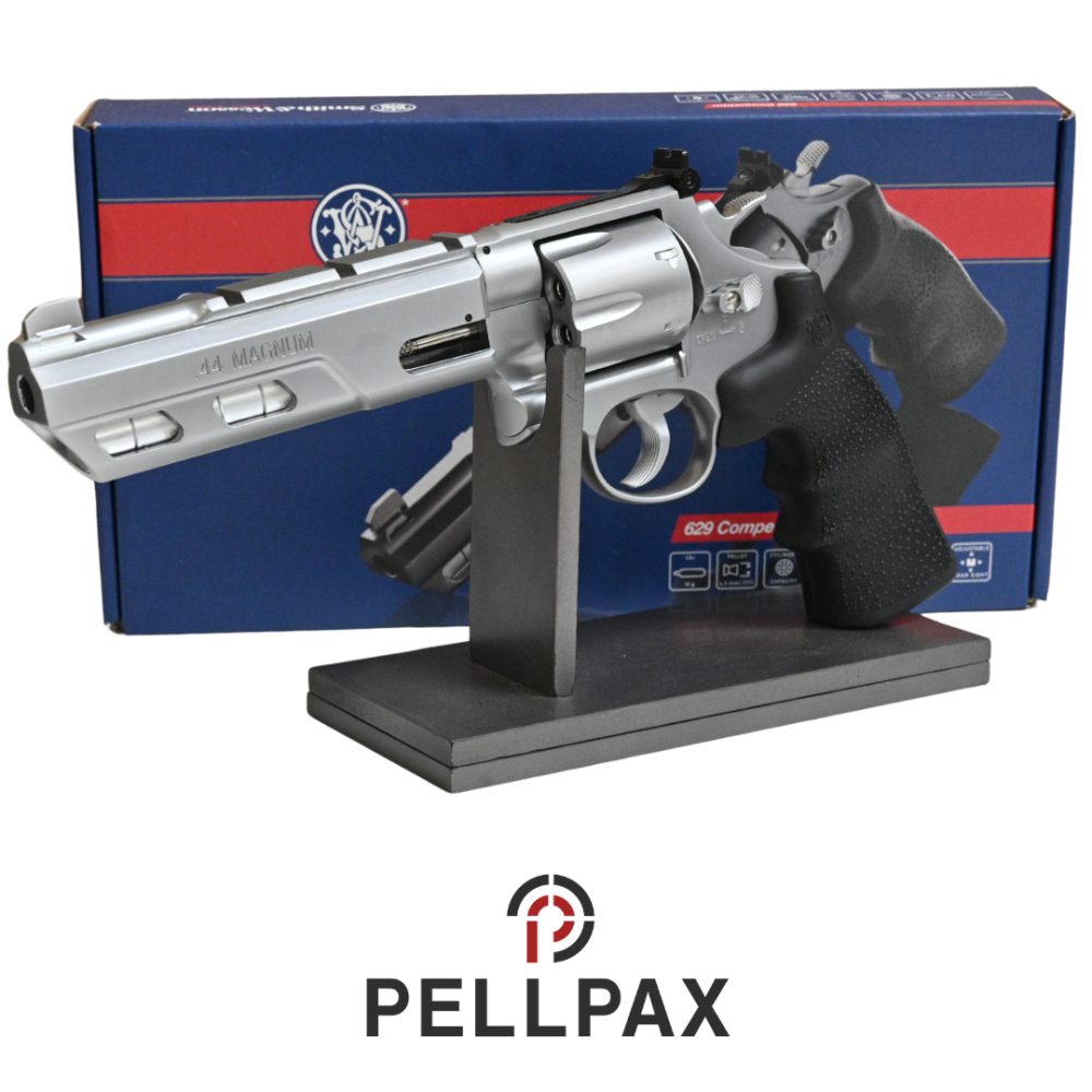 This preowned Smith and Wesson 629 competitor is a .177 Pellet calibre air pistol within an Original Box. This pistol is in great condition with minor usage marks.