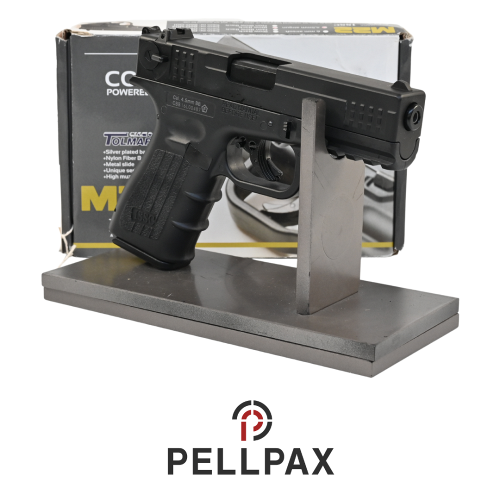 This preowned Tolmar ISSC M22 is a .4.5mm Steel BB calibre air pistol within an Original Box . This pistol is in great condition with minor usage marks.
