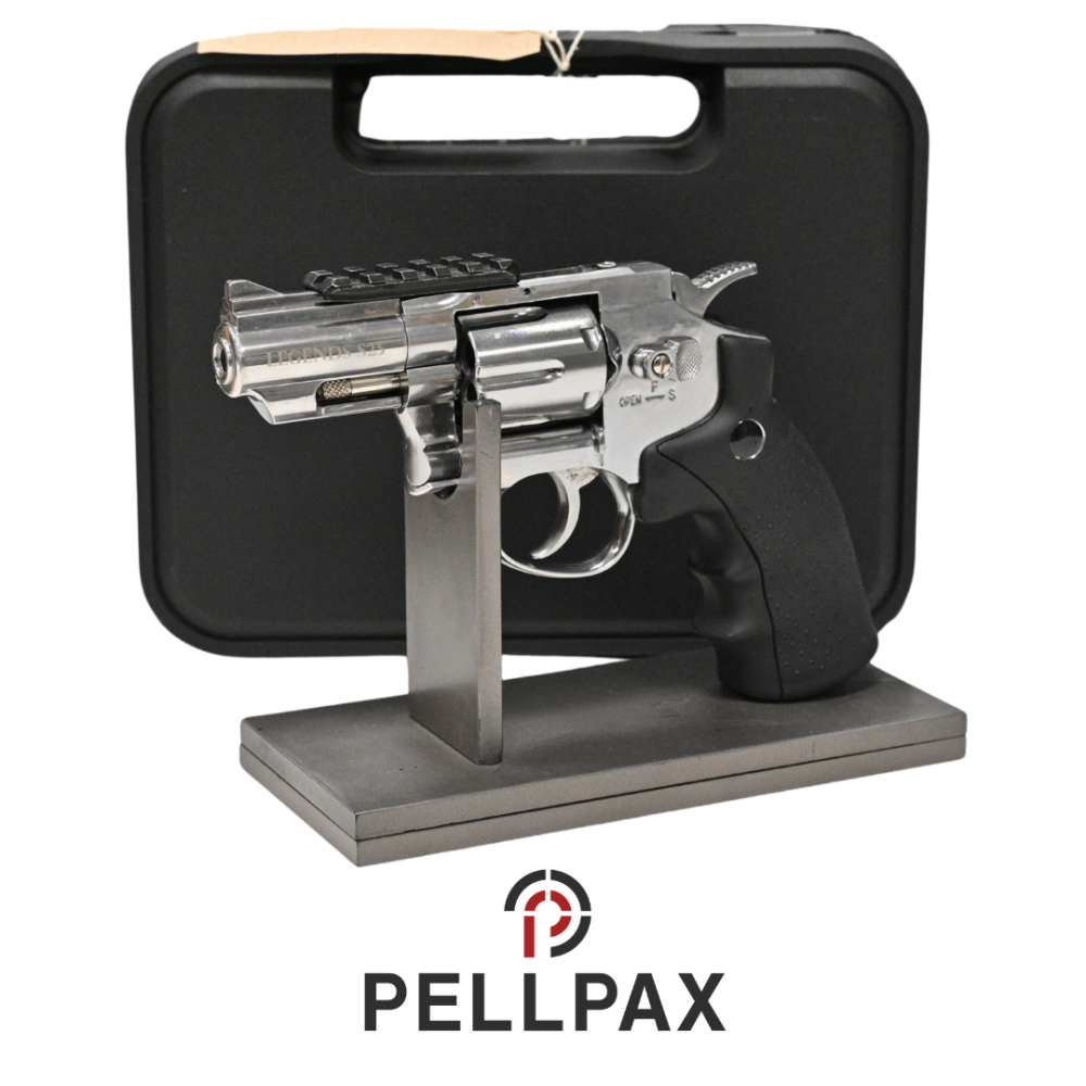 This preowned Umarex Legends S25 Revolver is a .177 Pellet calibre air pistol within an Hardcase. This pistol is in great condition with minor usage marks.