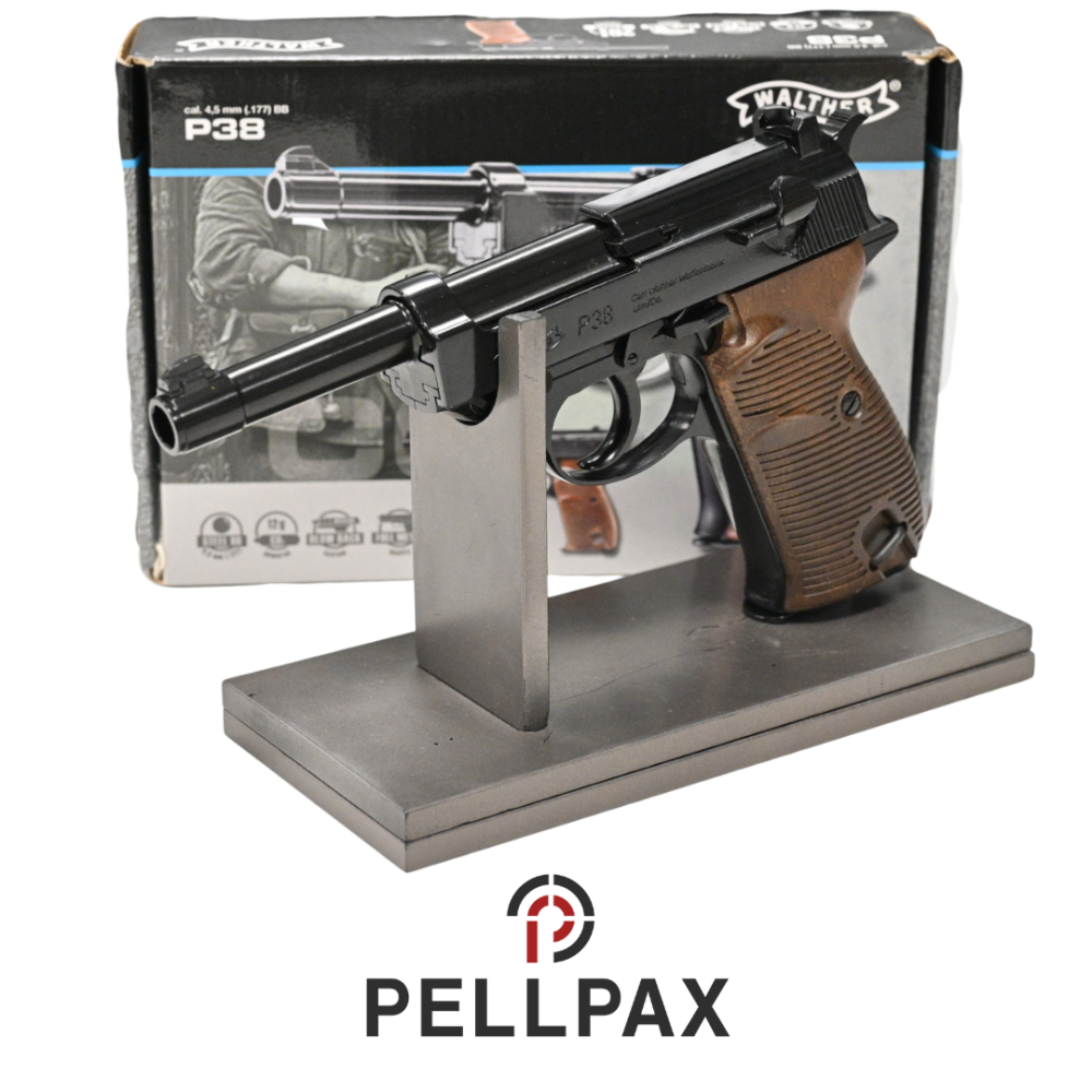 This preowned Walther P38 Blowback is a 4.5mm Steel BB calibre air pistol within an Original Box. This pistol is in great condition with minor usage marks.