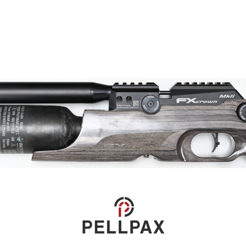 This ex display FX Crown MKII Compact Pepper Laminate is a .22 calibre air rifle within its Original Hardcase. This rifle is as new and not been used outside of testing.