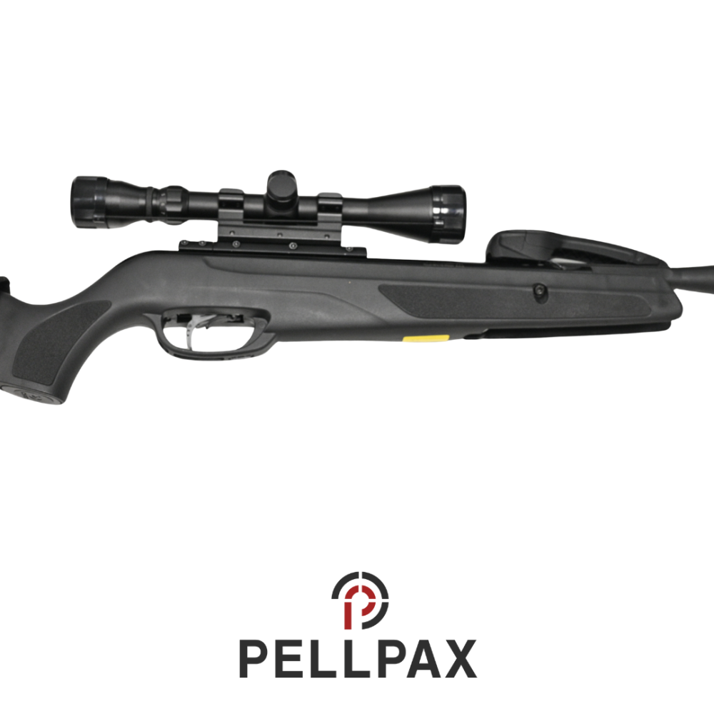 This preowned Gamo Maxxim Swarm Elite is a .22 calibre air rifle within an Pellpax gunbag. This rifle is in great condition with minor usage marks.