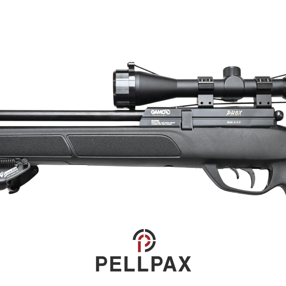 This preowned Gamo Phox is a .22 calibre air rifle within an Gamo Gunbag. This rifle is in great condition with minor usage marks.