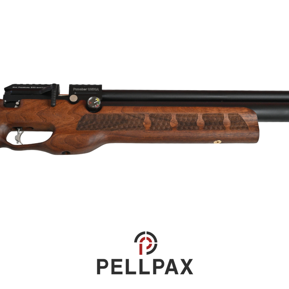 This preowned Kral Unica is a .22 calibre air rifle within an Original box. This rifle is in great condition with minor usage marks.