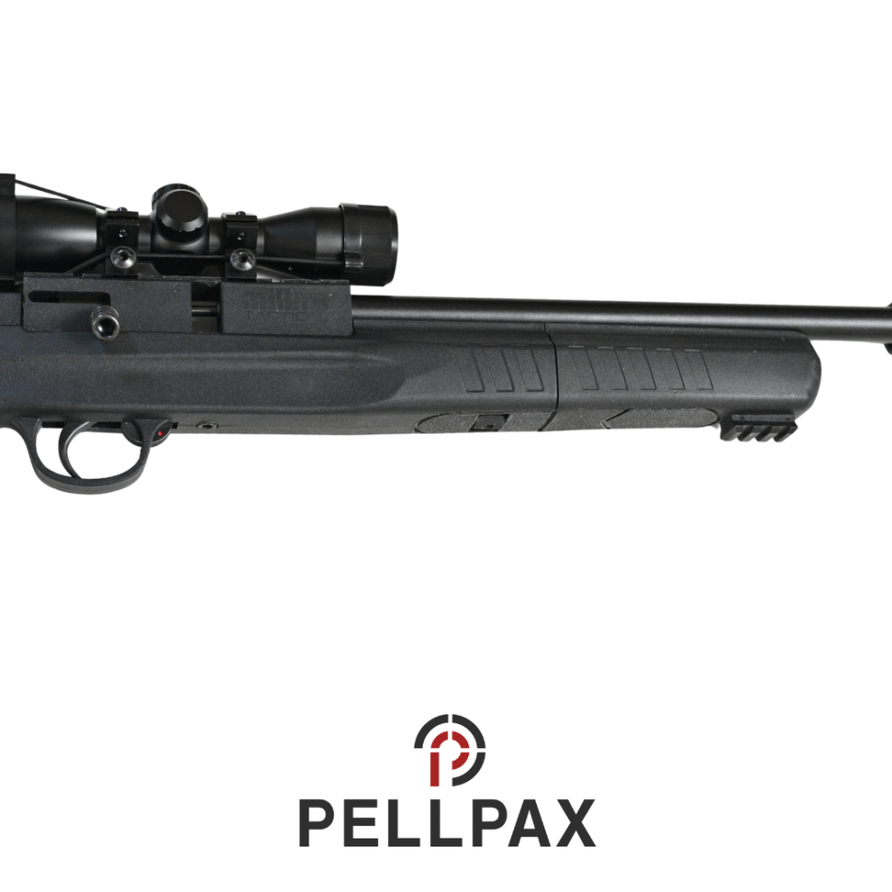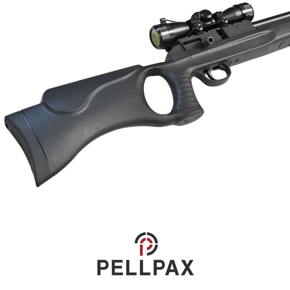 This preowned Milbro Speedmaster is a .22 calibre air rifle within an Pellpax Gunbag . This rifle is in great condition with minor usage marks.