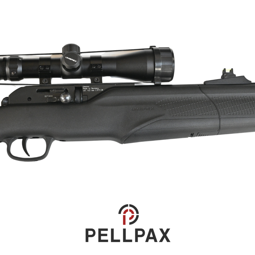 This preowned Umarex 850 M2 is a .177 calibre air rifle within an Pellpax Gunbag . This rifle is in great condition with minor usage marks.