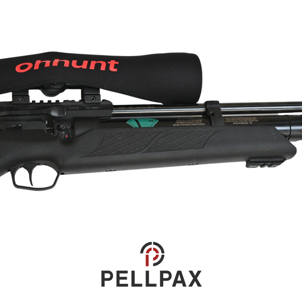 This preowned Weihrauch HW110 is a .22 calibre air rifle within an Savage Island Gunbag . This rifle is in great condition with minor usage marks.